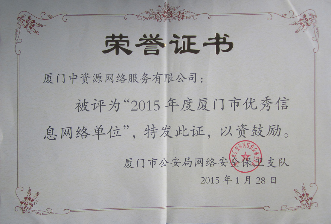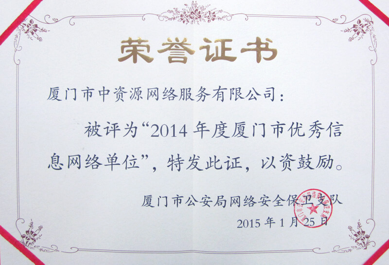 2014年度廈門(mén)市優(yōu)秀信息網(wǎng)絡(luò)單位