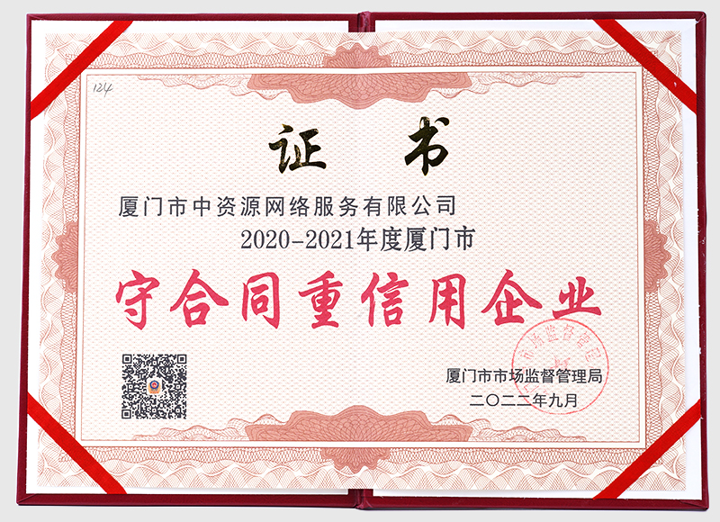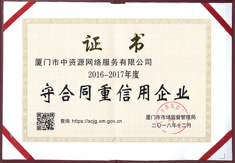 廈門(mén)優(yōu)質(zhì)品牌證書(shū)