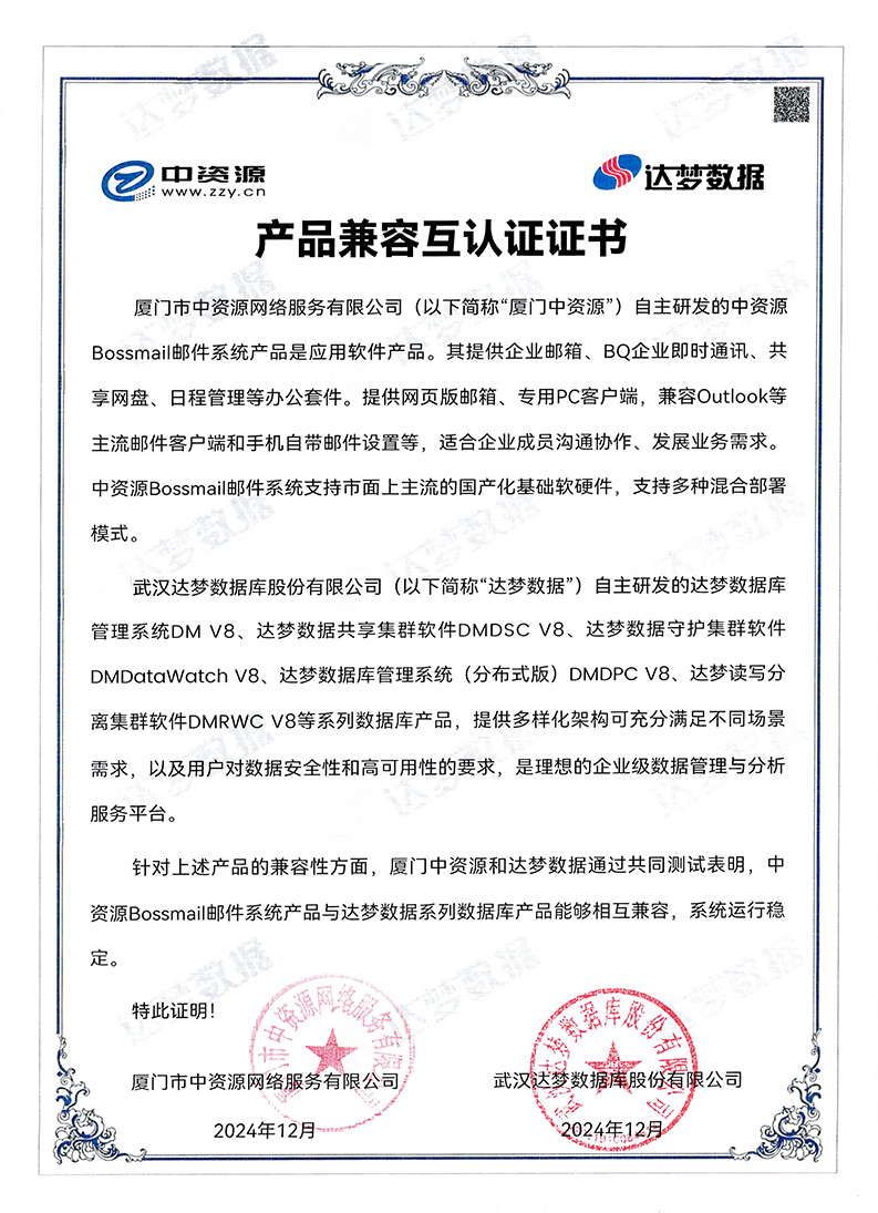 【國(guó)產(chǎn)化】達(dá)夢(mèng)數(shù)據(jù)產(chǎn)品兼容互認(rèn)證證書(shū)
