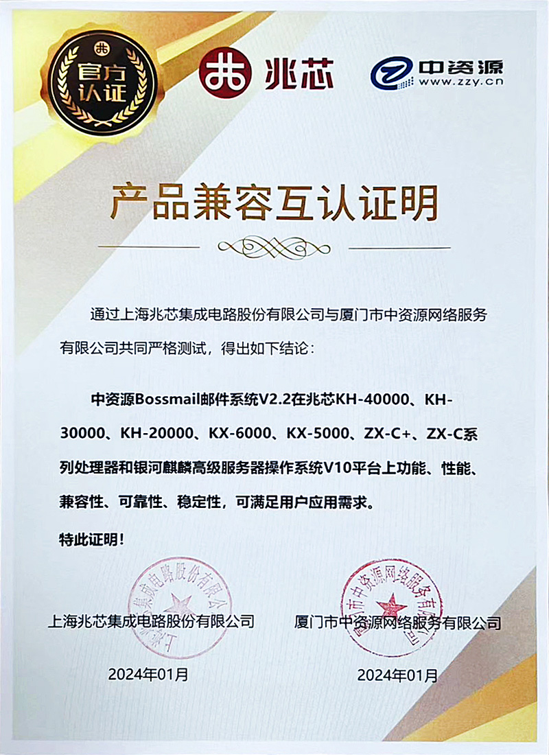 【國(guó)產(chǎn)化】兆芯產(chǎn)品兼容互認(rèn)證明