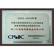 2004年度CNNIC認(rèn)證通用網(wǎng)址注冊(cè)服務(wù)機(jī)構(gòu)