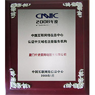 CCNNIC 2008年度中國(guó)互聯(lián)網(wǎng)絡(luò)信息中心認(rèn)證中文域名注冊(cè)服務(wù)機(jī)構(gòu)