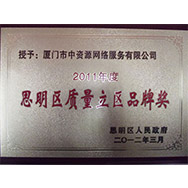 2011年度思明區(qū)質(zhì)量立區(qū)品牌獎(jiǎng)